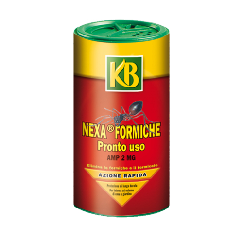 Esca insetticida in polvere bagnabile microgranulare Nexa Formiche AMP 2 MG - Azione Rapida della KB L'esca insetticida per formiche Nexa Formiche AMP 2 MG commercializzata dalla KB si distingue dagli altri prodotti della stessa categoria in quanto utilizza un principio attivo di nuova generazione appartenente alla famiglia dei neo-nicotinoidi chiamato Acetamiprid, che vanta non solo ampio spetto d'azione, ma anche lunga persistenza. Risulta efficace sia mediante contatto che attraverso l'ingestione, creando una contaminazione di massa. Basta infatti un solo insetto che veicoli la sostanza insetticida all'interno del nido per ottenere l'eradicazione della colonia in circa una settimana. L'azione lenta, ma abbattente, è una delle principali particolarità dell'articolo in questione, in quanto fornisce agli insetti striscianti contaminati il tempo per raggiungere la propria colonia. Nexa Formiche AMP 2 MG può essere utilizzato per eliminare utte le specie di formiche, scarafaggi, pulci, ragni, pesciolini d'argento, ecc. sia presso ambienti domestici interni che esterni. L'innovativa formulazione consente di applicarlo in tre modalità: impolveramento, nebulizzazione e innaffio. Una volta fatto ritorno al nido, la contaminazione globale sarà inevitabile: si tratta dunque del cosiddetto "effetto a cascata", possibile anche grazie alla coprofagia e alla necrofagia delle blatte, nonché alla trofallassi delle formiche. Gli escrementi e le carcasse conterranno infatti una quantità di Principio Attivo sufficiente ad eliminare altri insetti. L'esca insetticida antiformiche in granuli solubili Nexa funziona anche contro le specie resistenti ai prodotti tradizionali e in quantità modeste, debellando la minaccia fino a un mese. Il prodotto della KB si rivela ideale in contesti prettamente domestici: l'insetticida per formiche potrà essere applicato presso giardini, balconi, terrazzi o abitazioni, al fine di offrire una protezione di lunga durata. Applicazione Impolveramento (efficace contro formiche e altri insetti striscianti): utilizzare 20 g/m2 (10 grammi = livello 5 del tappo dosatore) di Nexa Formiche tal quale spargendo un sottile strato lungo gli angoli dei muri, nelle fessure e nelle crepe. Le formiche porteranno la polvere bagnabile microgranulare all'interno del formicaio, avvelenando tutta la colonia nel giro di quarantotto ore. Se necessario, rinnovare l'applicazione ogni 15-20 giorni. Predisporre un trattamento "a barriera" intorno ai luoghi da proteggere; non pulire le superfici trattate in modo da mantenere l'efficacia dell'attività insetticida. Nebulizzazione (efficace contro formiche e altri insetti striscianti): disperdere 100 g di Nexa Formiche AMP 2 MG in 1 litro di acqua nel serbatoio del nebulizzatore, utilizzare 1 litro del preparato così ottenuto per trattare circa 5 m2 di superficie. Innaffio (solo per ambienti esterni): utilizzare l'esca insetticida Nexa Formiche diluita in acqua alla dose di 20 g/l (20 grammi = livello 10 del tappo dosatore da disperdere in 1 litro di acqua) applicando sulla superficie del terreno alla dose di 1 litro per circa 1 m2; in questo caso è consigliato l'impiego di un apposito strumento per irrorare le zone interessate (nebulizzatore o spruzzatore). Agisce immediatamente: dopo sole 24 ore, non avvisterete più formiche. Caratteristiche tecniche Composizione: Acetamiprid puro 0,2 g e Coformulanti q.b. a 100 g 0.02% Utilizzo: tal quale 20 g/mq In irrigazione o diluito 20 g in 1 litro d'acqua per 1 mq; spray: 100 g in 1 litro d'acqua per 5 mq Periodo d'uso: marzo - ottobre Confezione: 1 flacone da 800 gr. con dosatore
