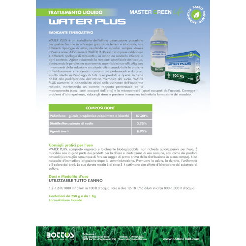 Bottos WATER PLUS Radicante tensioattivo per prato ottimizza irrigazione da 1 LT