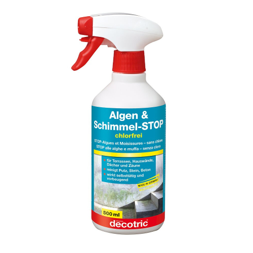 STOP ALLE ALGHE E MUFFA SENZA CLORO Elimina alghe e muffa senza lasciare cattivi odori. Per interni ed esterni. Spruzzare lo spray direttamente sulla superficie da pulire da una distanza di ca. 15-20 cm. L'effetto desiderato si otterrà dopo 1-2 giorni. In caso di infestazioni particolarmente ostinate, qualorea non si notino cambiamenti ottici sulle superfici trattate ripetere il procedimento dopo 3 giorni. Eliminare eventuali residui con acqua. Conservare ben chiuso, a prova di bambino, al fresco, ma al riparo dal gelo e lontano dai generi alimentari.