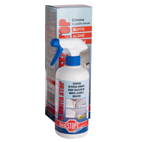 COMPOSIZIONE Sodio ipoclorito al 10%; tensioattivi non ionici inferiori al 5%. MISSIONE Elimina in pochi minuti qualsiasi traccia di muffe, alghe e muschi, presenti in qualsiasi tipo di ambiente. CARATTERISTICHE IL MUFFA STOP è un prodotto che elimina in pochi minuti qualsiasi traccia di muffe, alghe e muschi, presenti in qualsiasi tipo di ambiente. La sua speciale composizione è completata da ipoclorito di sodio che svolge un'azione di denaturazione che combatte lo sviluppo di funghi e muffe in modo estremamente efficace in qualsiasi tipo di ambiente. E' un prodotto adatto per l'utilizzo anche sulle giunture fra le piastrelle, dove si formano tracce nere dovute alla muffa. IL MUFFA STOP, se diluito (250 ml di prodotto in 5 lt d'acqua) è consigliato per la sanificazione di pavimenti, docce, piscine, sanitari, spogliatoi, etc. E' un prodotto pronto all'uso. ISTRUZIONI D'USO E' molto importante non raschiare o spazzolare la muffa prima di utilizzare il prodotto. Spruzzare sull'intera superficie ammuffita un leggero velo di prodotto da una distanza di 20 cm. circa. Lasciare agire il prodotto per 5 / 10 minuti e togliere i residui con un panno umido. In caso di muffa resistente ripetere l'operazione dopo 15 / 20 minuti. Non spruzzare su piante, stoffe, persone o animali è consigliato coprire mobili o oggetti nelle vicinanze. E' bene areare bene i locali durante e dopo il loro utilizzo. In caso di ventilazione insufficente o esposizione prolungata, indossare dispositivi di protezione per gli occhi e le vie respiratorie. Durante l'applicazione del prodotto è consigliabile proteggere i propri indumenti ed usare guanti di gomma. Dopo l'uso è importante togliere lo spruzzino e sciaquarlo bene, richiudere la confezione col tappo di sicurezza e riporlo in un luogo fresco e asciutto lontano dalla portata dei bambini. Non esporre il prodotto al gelo o ai raggi solari. Non miscelare il prodotto con altre sostanze chimiche