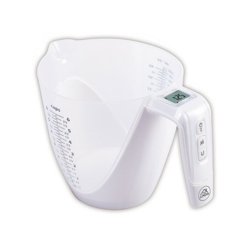 Display LCD, ciotola rimovibile in acciaio inox, funzione tara, funzione volume di latte e acqua. Spegnimento automatico in 2 minuti, indicatore di batteria scarica e sovraccarico, portata Kg. 5, divisione gr. 1, dimensioni cm. 21x21x13 h. Funziona con 2 pile 1,5V AAA (non incluse).