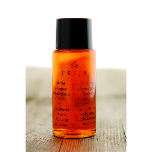 Detergente per corpo e capelli vitalizzante al Ginseng. Deterge delicatamente la pelle e il cuoio capelluto con l'avvolgente fragranza di Prija, con un'immediata sensazione di vitalità e benessere su tutto il corpo. Arricchito con estratto di Ginseng. Le proprietà rinvigorenti della pianta del Ginseng sono note in Oriente da molti secoli. Gli estratti dalle sue radici hanno proprietà tonificanti e rivitalizzanti sulla pelle. Un profumo avvolgente che unisce forza e carattere ad un'atmosfera calda e rilassante. Produzione: questo cosmetico è stato prodotto interamente in Italia