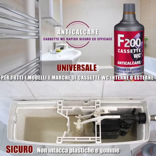 DESCRIZIONE: Disincrostante, detergente igienizzante super concentrato specifico per la rimozione dei depositi di calcare, incrostazioni e annerimenti quali ruggine e sporchi ostinati che si formano all'interno delle cassette WC, turche, orinatoi, etc. Sbianca ed igienizza a fondo le superfici, neutralizzando gli odori sgradevoli. Non aggredisce parti e componenti in plastica o gomma. APPLICAZIONI: DISITANK 2X STRONG è indicato per la sanificazione e disincrostazione di cassette di risciacquo sia incassate che esterne di abitazioni, locali pubblici, industrie, officine, negozi, etc. MODO D'USO: Chiudere l'acqua in entrata della vaschetta, indi versare circa 250 ml di prodotto e lasciare agire per circa 10 - 15 minuti. Scaricare completamente la cassetta e ripetere l'operazione. Infine scaricare nuovamente preoccupandosi di risciacquare abbondantemente. Si consiglia di effettuare il trattamento periodicamente ogni 2 - 3 mesi, in funzione della durezza dell'acqua. DATI TECNICI: Aspetto liquido viscoso Colore azzurro Odore caratteristico pH 1,0 ± 0,5 pH soluzione all'1 % 2,5 ± 0,5 Densità 1,20 ±0,05 g/ml Punto di infiammabilità non infiammabile Solubilità in acqua solubile STOCCAGGIO: Conservare sempre ben chiusi i contenitori, al riparo dalla luce diretta e dalle fonti di calore. Conservare a temperature comprese tra -6 e +40 °C. INGREDIENTI: Aqua, Chloridric Acid, Phosphoric Acid, Cetrimonium Chloride, Sodium Xylenesulfonate, parfum, C9-11 Alcohols, Alcol Etossilato, Butylphenyl methylpropional, Linalool, Citronellol, Alpha-isomethylionone, coloranti.
