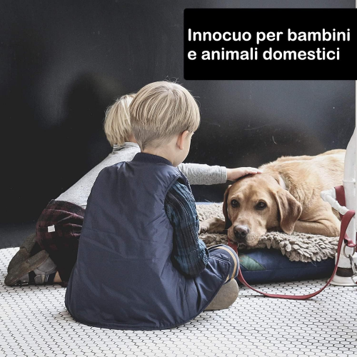 PERCHÈ USARLO EFFICACE CONTRO TUTTI GLI INSETTI E' un insetticida pronto all'uso in emulsione acquosa che per la sua triplice azione snidante, abbattente e residuale risulta particolarmente efficace per disinfestazioni negli ambienti domestici e circoscritti. Esplica la sua azione letale nei confronti degli insetti sia per contatto che per ingestione e non presenta fenomeni di assuefazione. E' efficace su insetti alati e striscianti in ogni stadio di sviluppo (uova, larve e adulti) ed è particolarmente attivo contro Blatte, Formiche, Pulci, Zecche, Mosche, Zanzare, Tarli e Acari. QUANDO E COME USARLO Si impiega in tutti i periodi dell'anno alla comparsa delle prime infestazioni e degli insetti. Spruzzarlo direttamente su pareti, fessure, pavimenti, lungo gli stipiti delle porte e finestre, sui battiscopa dei pavimenti nei mobili, cucine, cantine, depositi, cucce, ricoveri di cani e gatti. L'uso può essere esteso a qualunque ambiente, domestico e civile. Presidio Medico Chirurgico. Registrazione del Ministero della Salute n. 16569 CONFEZIONE Nebulizzatore 500 ml