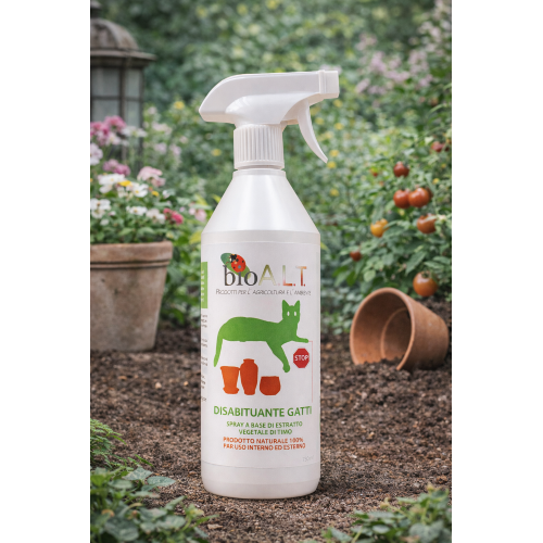 Disabituante Gatti Bio A.L.T. è uno spray a base di estratto vegetale di timo, formulato per allontanare naturalmente i gatti dagli ambienti e dalle superfici che si desidera proteggere.