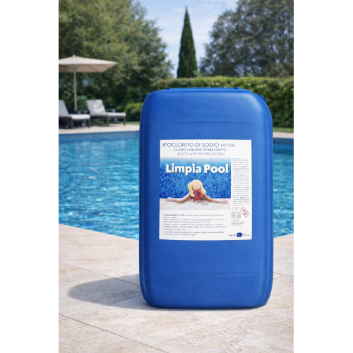 LIMPIA POOL PH Meno Liquido - Il Miglior Correttore di pH per Piscine Mantenere il corretto equilibrio del pH è fondamentale per la qualità dell'acqua della piscina e per garantire un'esperienza di balneazione sicura e confortevole. LIMPIA POOL PH Meno Liquido AC è un abbattitore di pH ad alta concentrazione, ideale per piscine private e pubbliche. ?? PERCHÉ SCEGLIERE LIMPIA POOL PH MENO? ? Formula ad alta purezza per un'azione efficace e duratura. ? Previene incrostazioni e intasamenti del filtro causati da pH elevato. ? Protegge la pelle e gli occhi evitando irritazioni. ? Compatibile con cloro, antialghe e flocculanti, per un trattamento completo. ? Facile da usare con dosaggi semplici: 100 ml ogni 10 m³ d'acqua riducono il pH di 0,1 unità. ?? Come Utilizzarlo? Misurare il livello di pH della piscina (valore ottimale: 7.2 - 7.6). Se superiore, aggiungere 100 ml di prodotto ogni 10 m³ d'acqua per abbassare di 0,1 unità. Versare direttamente in vasca o nel sistema di dosaggio automatico. ?? Sicurezza e Qualità Certificata LIMPIA POOL PH Meno Liquido è un prodotto autorizzato dal Ministero della Sanità, garanzia di qualità per un trattamento sicuro ed efficace dell'acqua della tua piscina. ?? Formato: Confezione da 25 kg ?? Ottimizza la manutenzione della tua piscina con LIMPIA POOL! Indicazioni Misurare il livello di pH della piscina (valore ottimale: 7.2 - 7.6). Se superiore, aggiungere 100 ml di prodotto ogni 10 m³ d'acqua per abbassare di 0,1 unità. Versare direttamente in vasca o nel sistema di dosaggio automatico. Protegge la pelle e gli occhi evitando irritazioni. Compatibile con cloro, antialghe e flocculanti, per un trattamento completo.