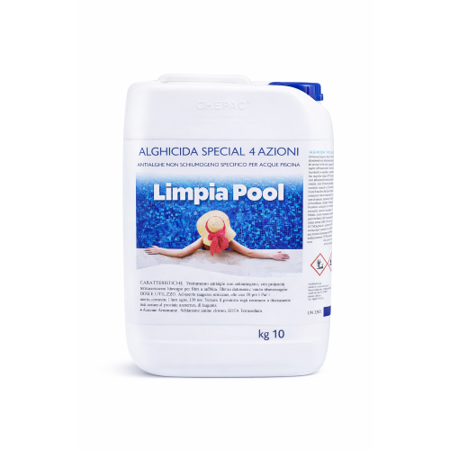Limpia Pool ANTIALGHE 4 AZIONI Alghicida Sistemico Azzurrante Piscine 10 KG