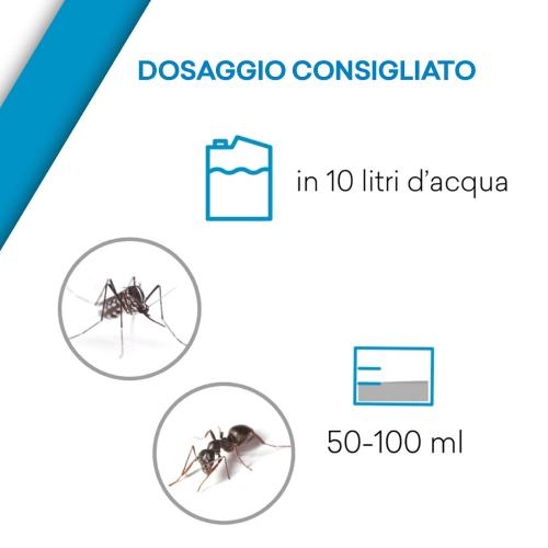 Zanzare: 50-100 ml per 10 litri d'acqua.
