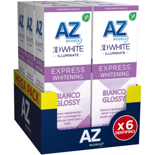 6 X AZ 3D White BIANCO GLOSSY Dentifricio Sbiancante Rimuovi macchie 50 ML